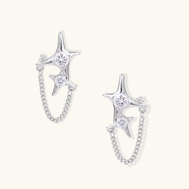 Double star studs with sparkling zirconia centers connected by delicate chains—giving cosmic princess energy that's absolutely perfect for capturing those golden hour selfies and late-night gallery openings.
